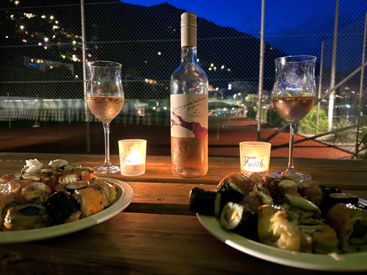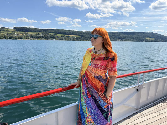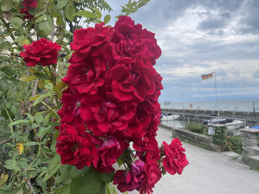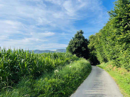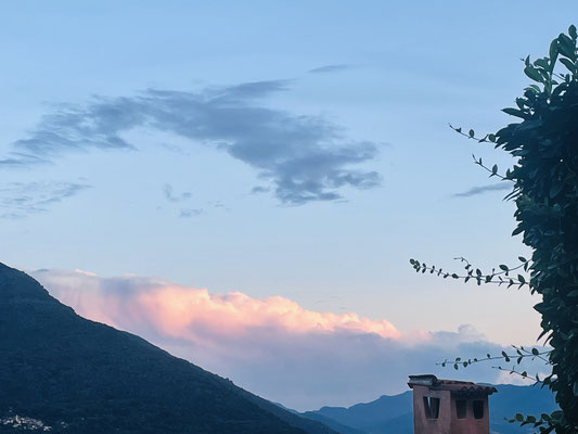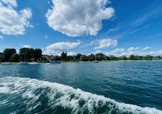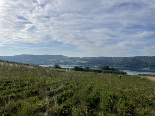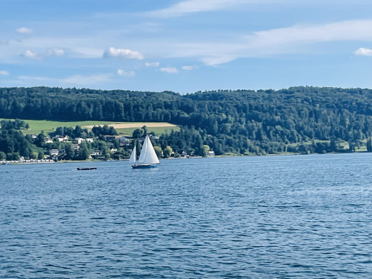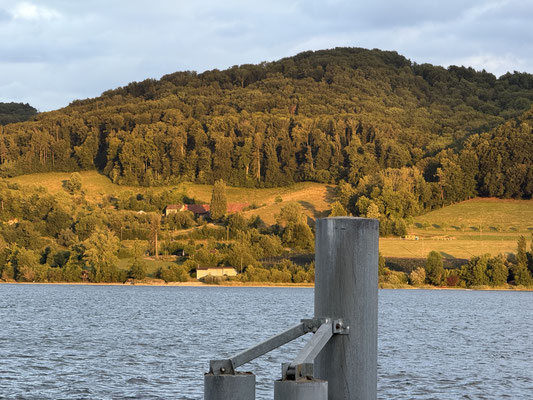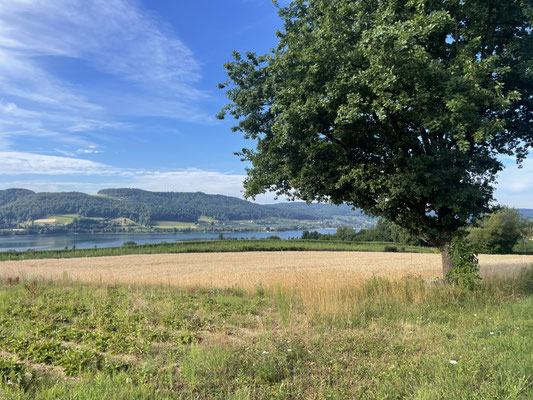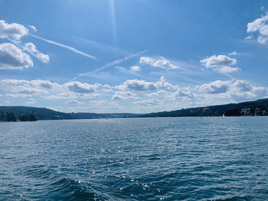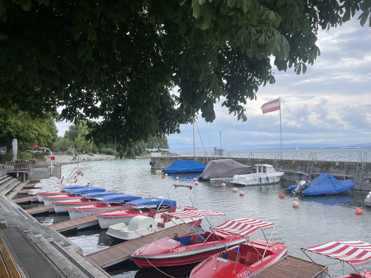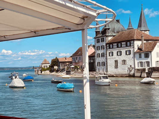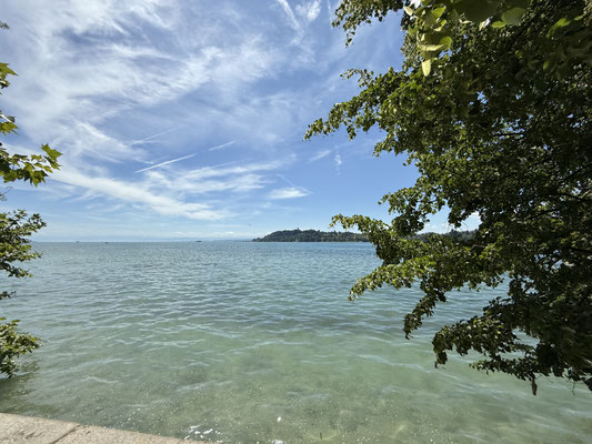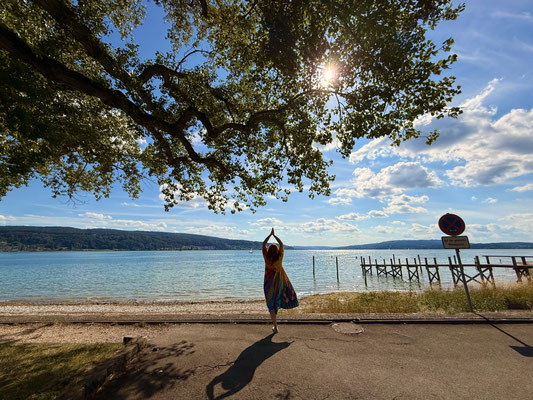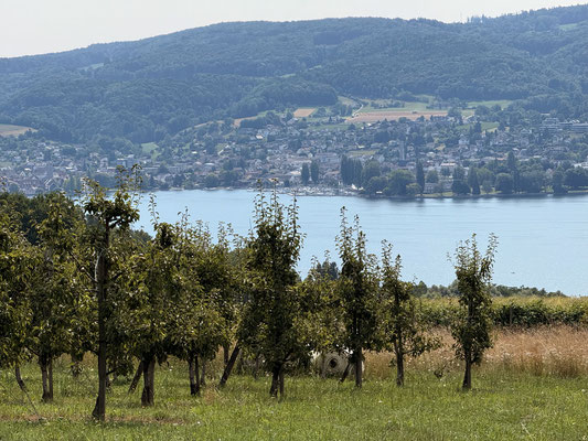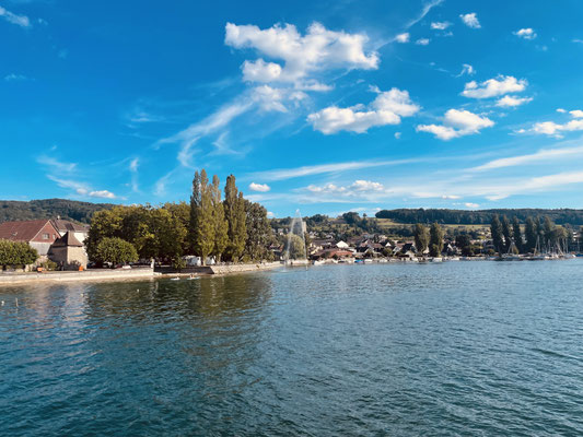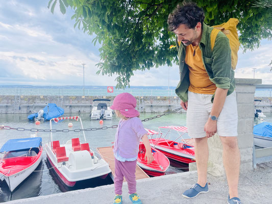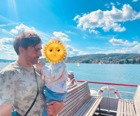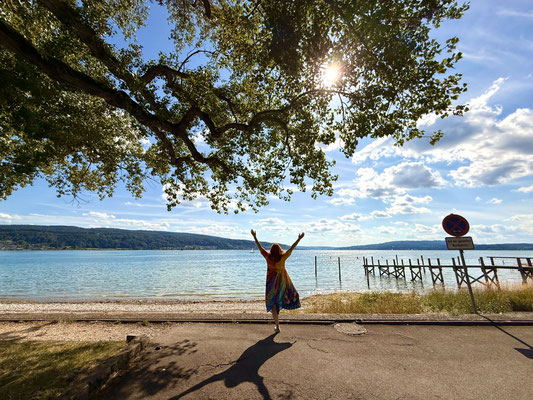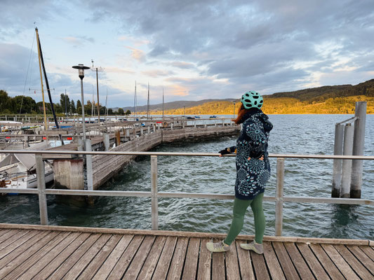 In den wundervollen Abendstunden im Sonnenuntergangslicht radelten wir gemütlich durch unser kleines Dörfchen Wangen am Bodensee. Es ist ein gemütlicher Ort mit kleinen Fachwerkhäuschen und einem schönen Hafenplatz. Unsere kleine Tour führte uns dann einen Schotterweg hinauf und wir sahen ein Paar, welches sich gerade an einem Pfirsich-Baum bediente - hier wird gemopst, dachten wir uns! Aber sogleich riefen uns die beiden nach, dass es doch ihre Plantage sei und luden uns auf einen traumhaft leckeren und saftigen Pfirsich ein. Die ganze Plantage wird von Hand geerntet und die Früchte auf den Wochenmärkten verkauft. Es war ein unerwarteter, freundlicher Moment mit einem kleinen feinen Genuss am Abend. Manchmal braucht es nicht viel für ein kleines Glück.