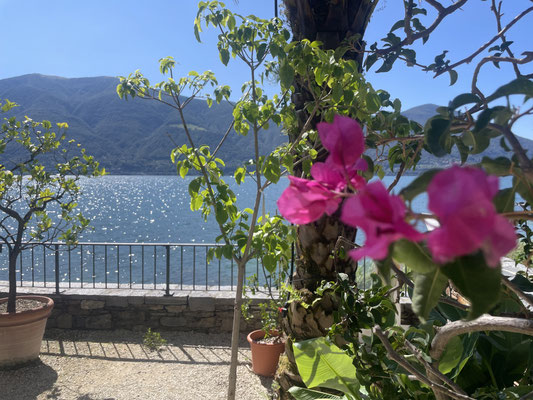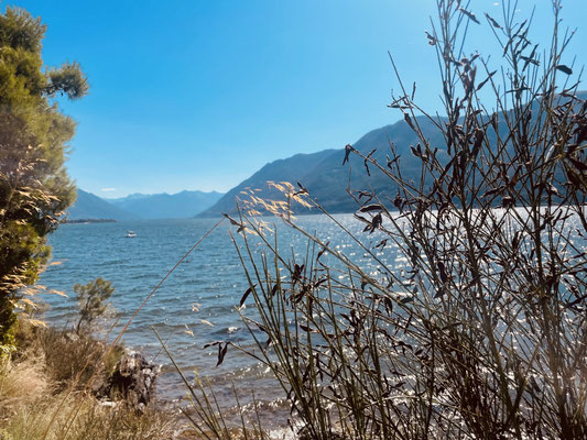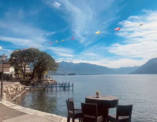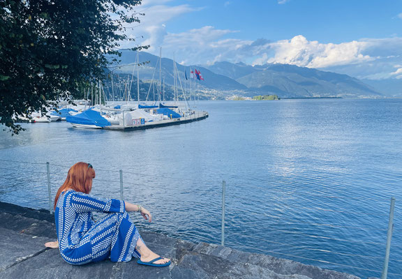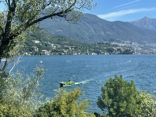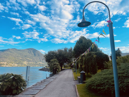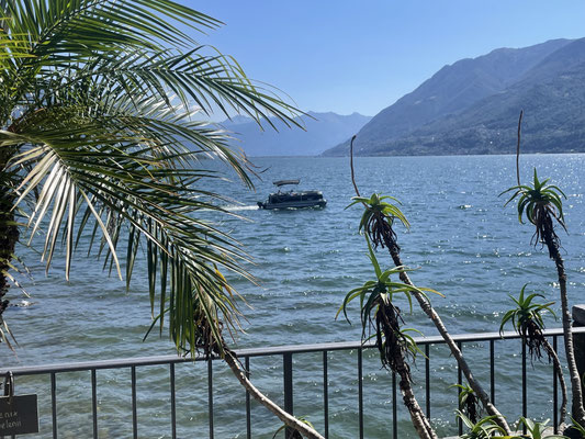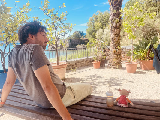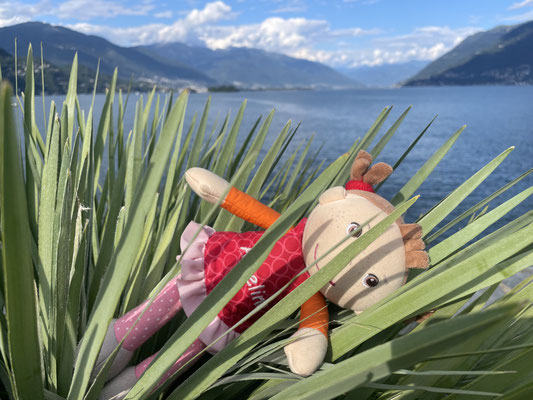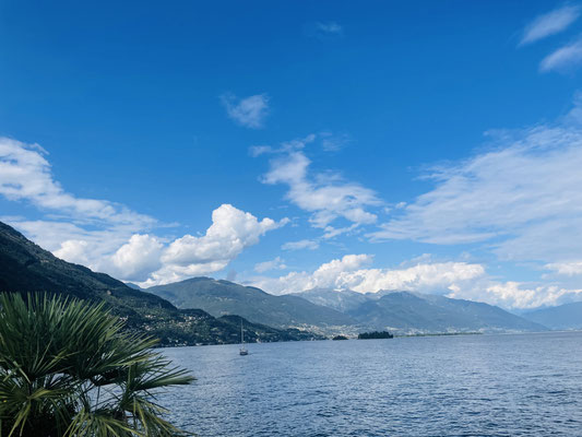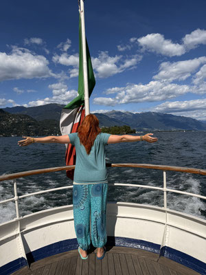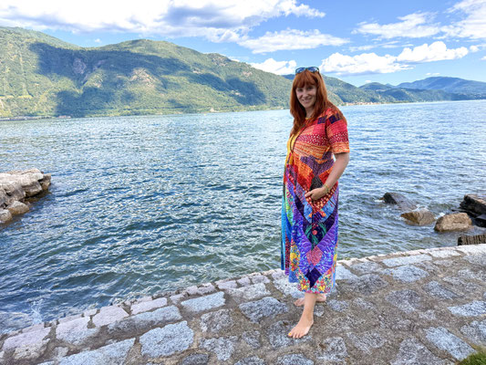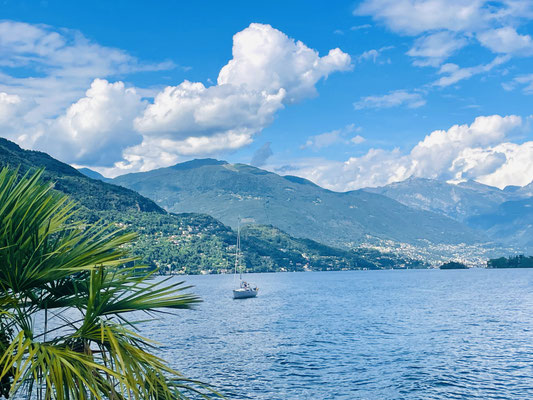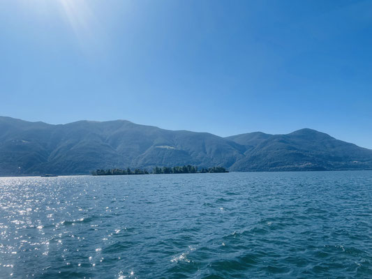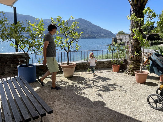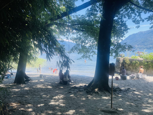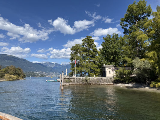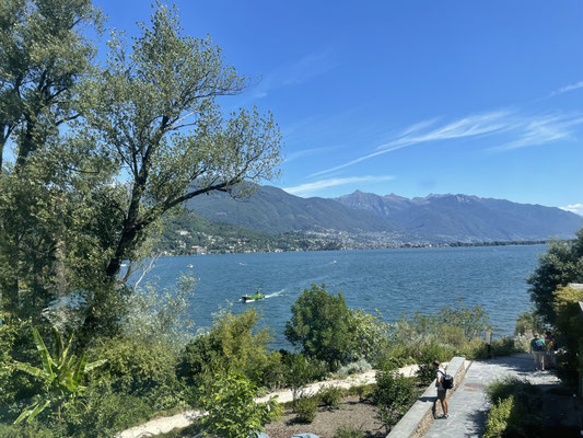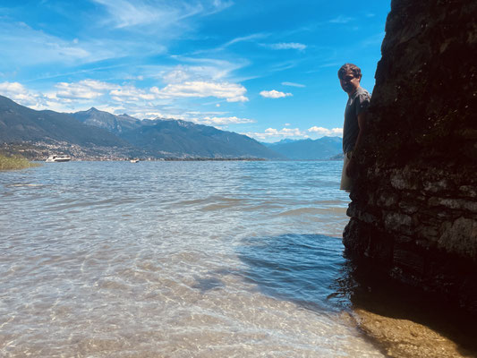 Es sind nur wenige Minuten mit dem Schiff gewesen und wir landeten in einer anderen Welt an - eine zauberhafte kleine Insel inmitten des Lago Maggiore. Wir schlenderten am fürstlichen Herrenhaus, der Villa Emden vorbei und entdeckten gespannt die große Vielfalt verschiedenster Pflanzen und Bäume. Auch unsere Kleine schnupperte schon ganz aufgeregt an den Blüten und erkundete die Wege. Speisen durften wir auf einer herrlichen Terrasse mit Blick durch die Rundbögen auf den See - wie in einem alten Sissi-Film. Dann entdeckten wir einen kleinen Strand und das Wasser lockte. Aber natürlich hatten wir unsere Badesachen NICHT dabei. Ach, was soll`s … rein ins Wasser mit Hemdchen und Schlüppi. Und es war ein Traum! Manchmal muss man eben einfach machen und genießen und wir entspannten im kühlen Nass während die Kleine in ihrem Wagen schlummerte.