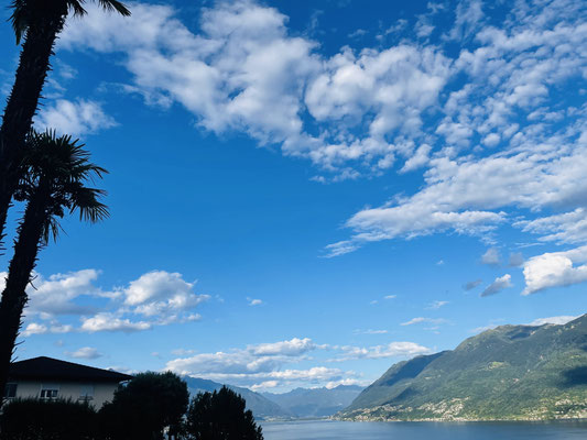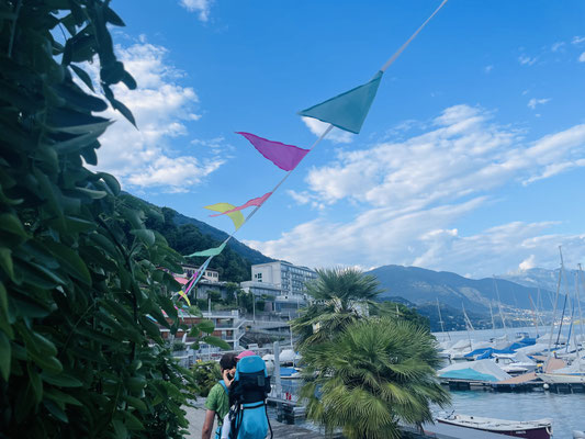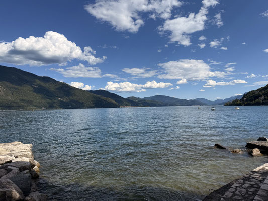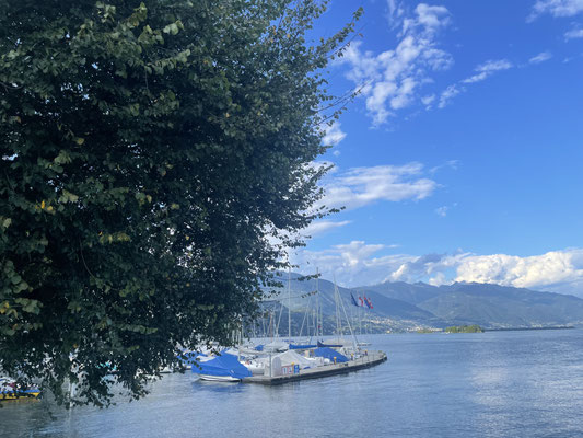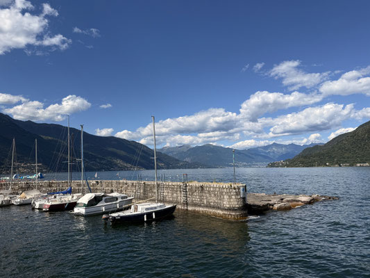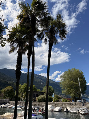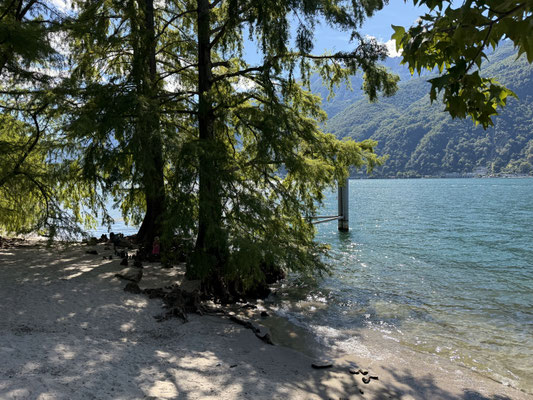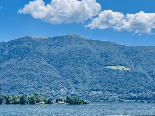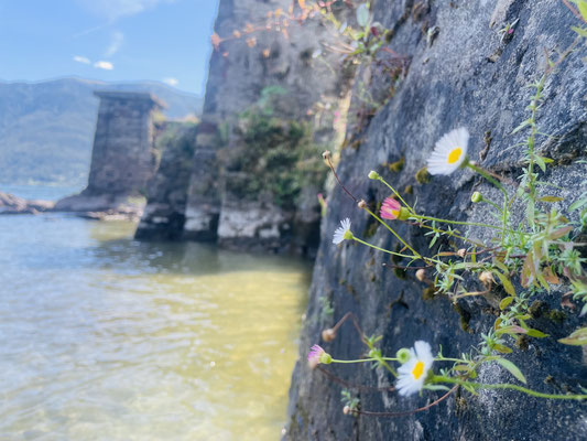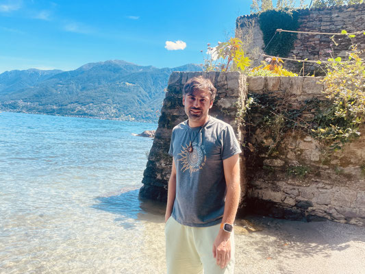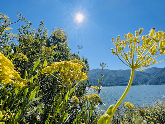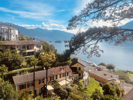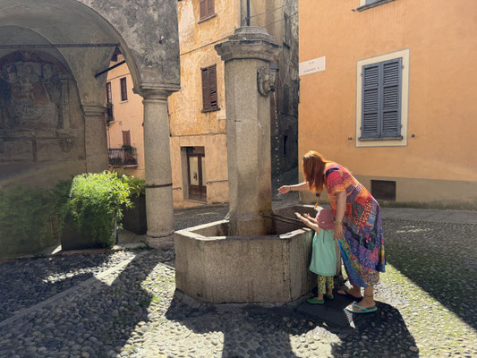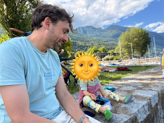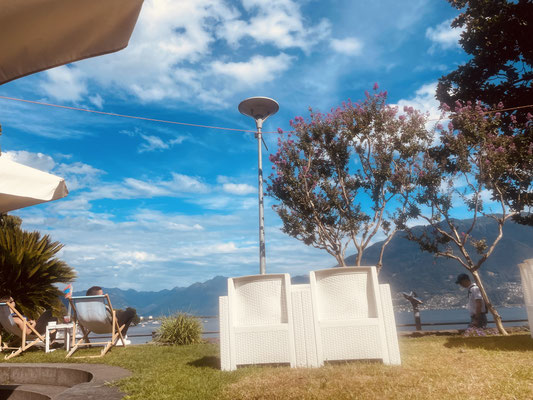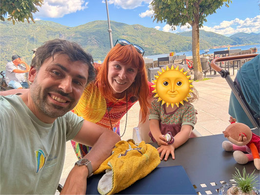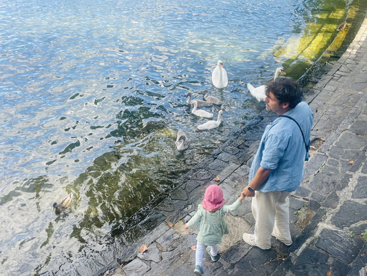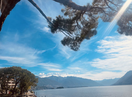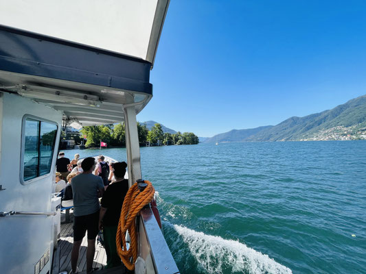 Es sind nur wenige Minuten mit dem Schiff gewesen und wir landeten in einer anderen Welt an - eine zauberhafte kleine Insel inmitten des Lago Maggiore. Wir schlenderten am fürstlichen Herrenhaus, der Villa Emden vorbei und entdeckten gespannt die große Vielfalt verschiedenster Pflanzen und Bäume. Auch unsere Kleine schnupperte schon ganz aufgeregt an den Blüten und erkundete die Wege. Speisen durften wir auf einer herrlichen Terrasse mit Blick durch die Rundbögen auf den See - wie in einem alten Sissi-Film. Dann entdeckten wir einen kleinen Strand und das Wasser lockte. Aber natürlich hatten wir unsere Badesachen NICHT dabei. Ach, was soll`s … rein ins Wasser mit Hemdchen und Schlüppi. Und es war ein Traum! Manchmal muss man eben einfach machen und genießen und wir entspannten im kühlen Nass während die Kleine in ihrem Wagen schlummerte.