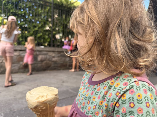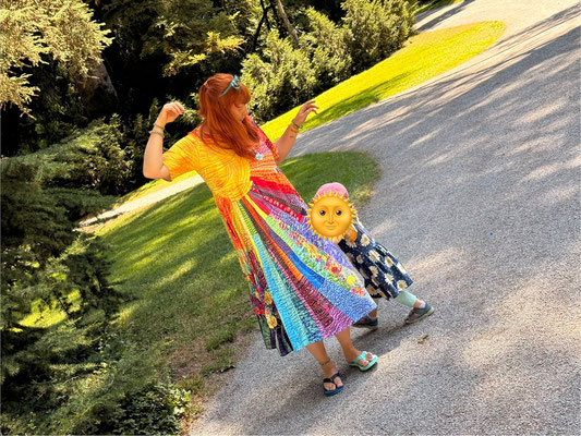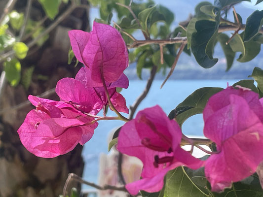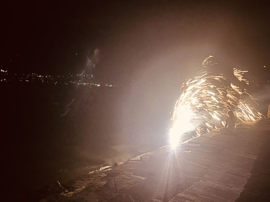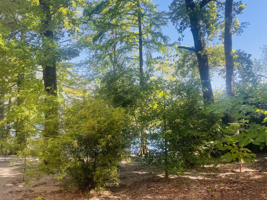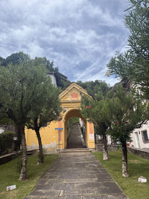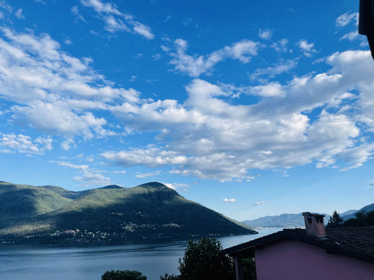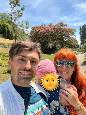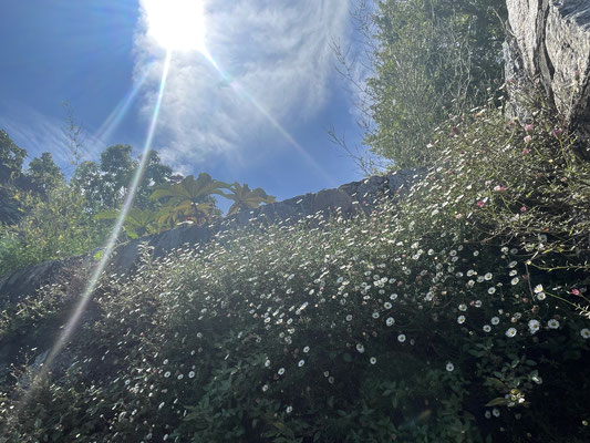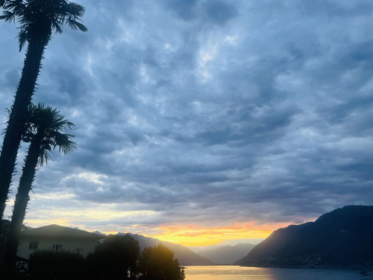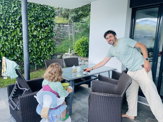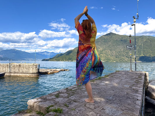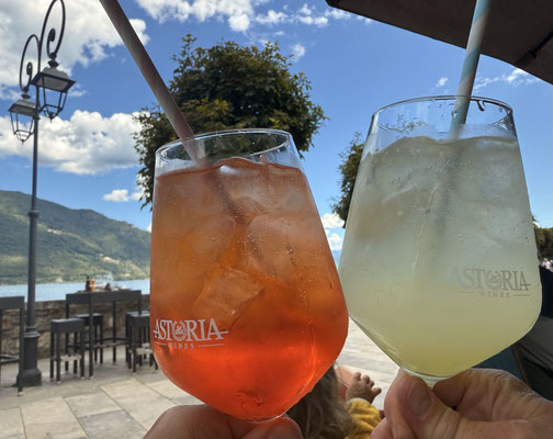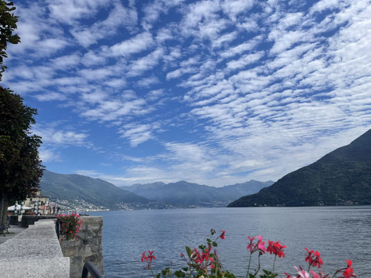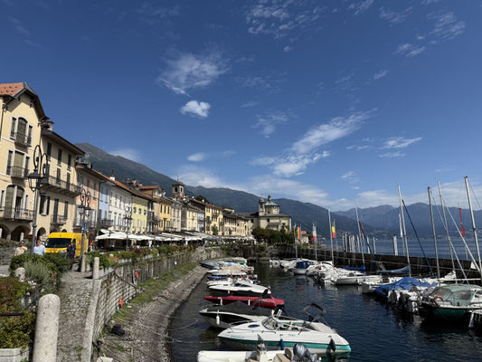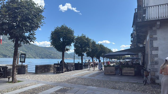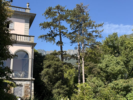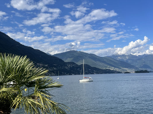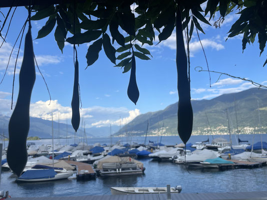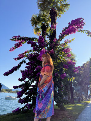 Es sind nur wenige Minuten mit dem Schiff gewesen und wir landeten in einer anderen Welt an - eine zauberhafte kleine Insel inmitten des Lago Maggiore. Wir schlenderten am fürstlichen Herrenhaus, der Villa Emden vorbei und entdeckten gespannt die große Vielfalt verschiedenster Pflanzen und Bäume. Auch unsere Kleine schnupperte schon ganz aufgeregt an den Blüten und erkundete die Wege. Speisen durften wir auf einer herrlichen Terrasse mit Blick durch die Rundbögen auf den See - wie in einem alten Sissi-Film. Dann entdeckten wir einen kleinen Strand und das Wasser lockte. Aber natürlich hatten wir unsere Badesachen NICHT dabei. Ach, was soll`s … rein ins Wasser mit Hemdchen und Schlüppi. Und es war ein Traum! Manchmal muss man eben einfach machen und genießen und wir entspannten im kühlen Nass während die Kleine in ihrem Wagen schlummerte.