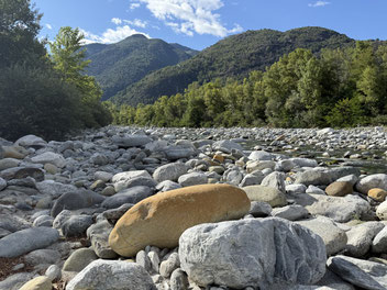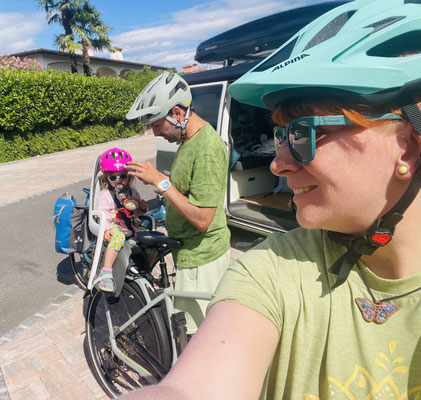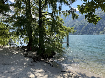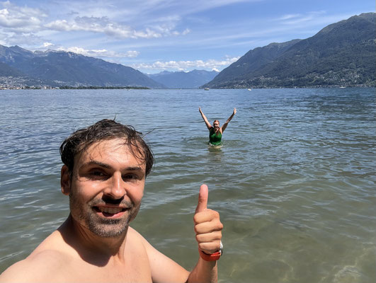 Endlich! Die Räder sind aufgeladen, eine grobe Richtung überlegt und schon sitzen wir im Auto und fahren nach Ascona. Für uns gibt es kaum etwas Schöneres als ganz entspannt die Gegend mit dem Rad (oder wie man in der Schweiz sagt: Velo) zu erkunden. Wir sind frei, der Wind weht uns um die Haare und wir haben genug Zeit alles zu entdecken, was uns unter die Augen kommt. Unser kleiner Sonnenschein liebt es auch. Wehe, wir halten mal an, dann wird gleich auf den Sattel geklopft: „weiter, weiter!“. Die schönsten Momente erlebt man auch immer ganz ungeplant, spontan. Du suchst sie nicht, sie finden dich. Und so fand uns ein wundervoller kleiner Strand am Ufer der Maggia. Wir lehnten entspannt an den Steinen, die Füße gruben sich in den Sand, wir genossen den Eiscafè und die kleine Motte knusperte ihre Leckerlis. Einfach nur schön! Unsere Intuition hat uns hierher geführt …