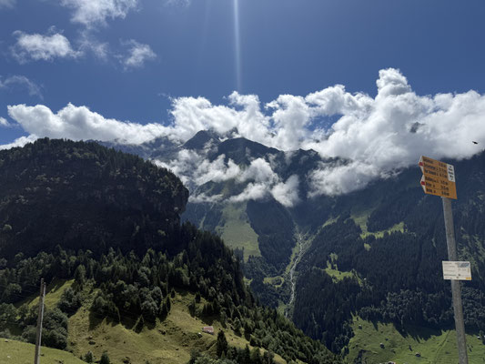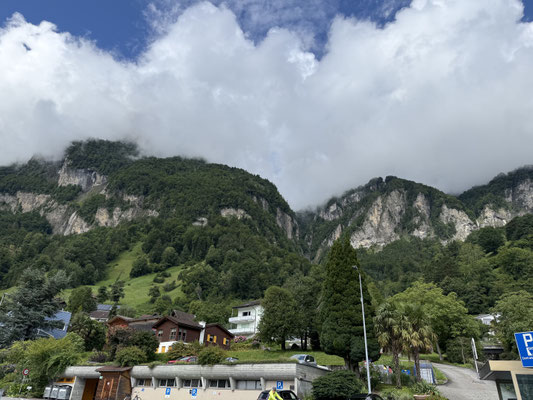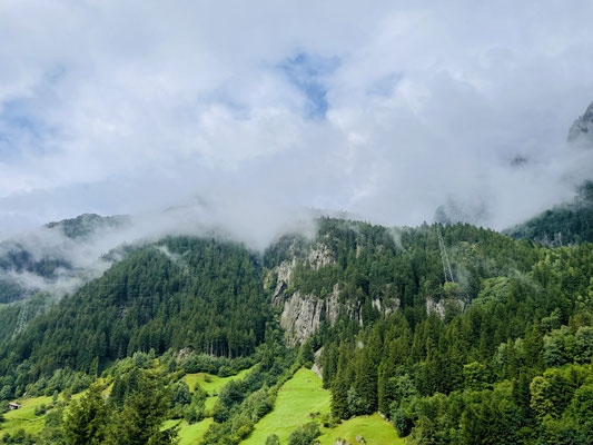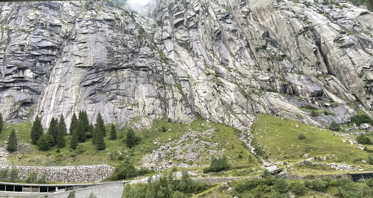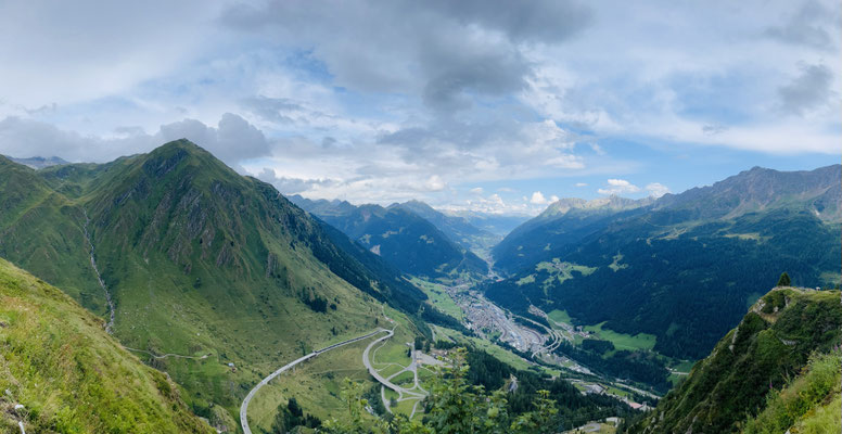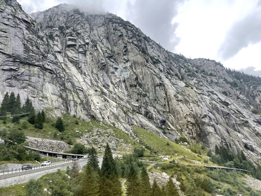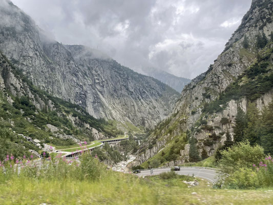 Hurra, der Regen macht mal Pause! Wir fahren los in Richtung Seilbahn, um auf eine Alm zu fahren. Ausblick? - grau, düster, Regen. Der Blick in die andere Richtung sah schon besser aus: nur ein paar Wolken und Sonne. Los geht`s … rauf auf den Gotthardpass. Aus Richtung Altdort ging es zunächst steil nach oben an schroffen und bizarr wirkenden Felskanten vorbei und dann fühlten wir uns wie in den schottischen Highlands, in einer steinigen, baumlosen Hochebene. Auf dem Pass machten wir eine kleine Kaffeepause und unser kleiner Sonnenschein bekam einen Nuss-Zopf nach dem anderen geschenkt, weil Sie das Herz des freundlichen Mitarbeiters erweichte. Ein paar nette Gespräche folgten und so durften wir einen schönen Herzensmoment erleben, bevor es auf der anderen Seite hinunter ging und wir ins sonnige Tessin blickten. Ein wundervoller Ausblick und schöner Ausflug.