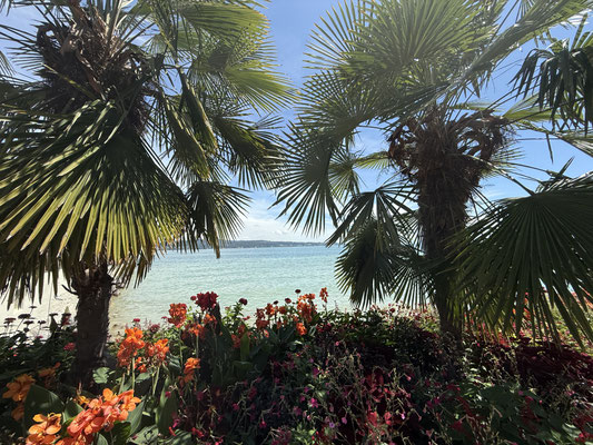 Die Insel Mainau am Bodensee war besonders für mich (Netti) ein wichtiger Spot - da ich ein Teenie war, als ich das letzte Mal mit meiner Mama dort war. Ist also schon ein paar Jährchen her. Die Insel ist immer noch so wunderschön, wie ich sie in Erinnerung hatte. Die Blumen sind so herrlich angelegt und das Wasser des Sees ist türkisblau. Wenn man das mit einer Palme zusammen fotografiert, könnte man denken, man ist in der Karibik.